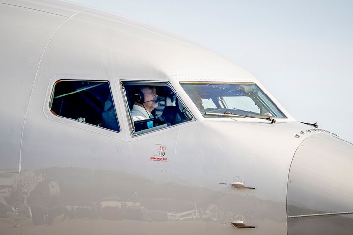 オランダ政府専用機の副操縦士として、フィラデルフィア国際空港に到着したウィレム=アレクサンダー国王。 Patrick van Katwijk / Getty Images