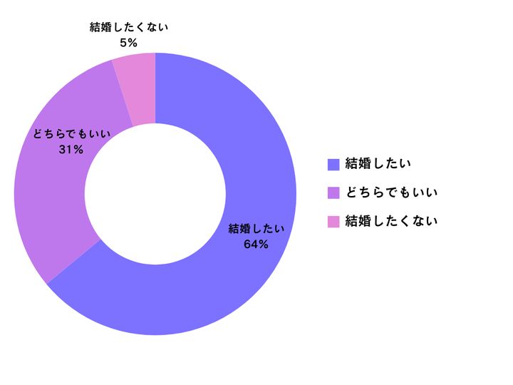 2010年代に比べ日本全体の婚姻件数は減っているけれど、まだまだ結婚したいと思っているgirl読者が6割以上。その理由は「1人で老後を過ごすのが不安だから」「自分の家庭を築きたいから」というもの。一方結婚したくない派からは、「今のままでも十分だから」という声が。キャリアや自分の人生を楽しみたい読者にとって、結婚はすべてじゃないのかも。