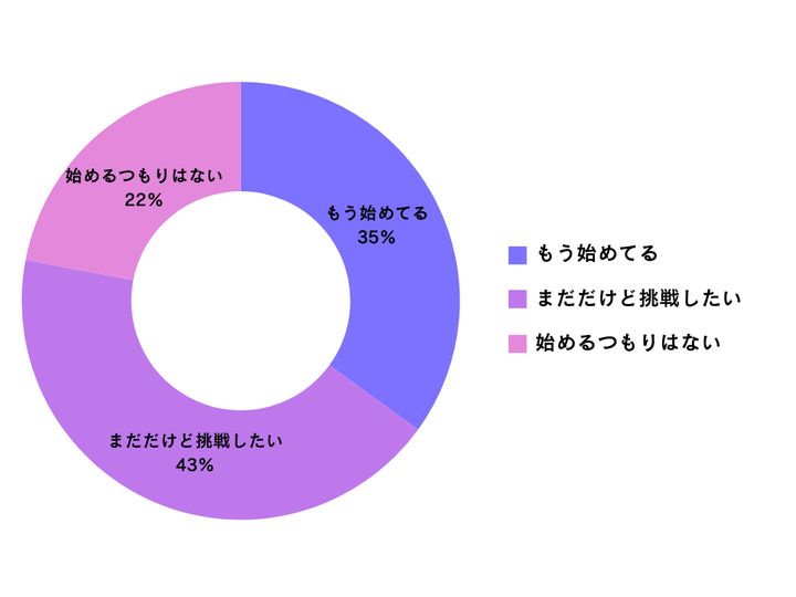 物価高や円安など将来が不安になるニュースが多いからこそ、資産運用や株に前向きな読者が7割以上。会社の制度を活用したり、自ら積み立てNISAやポイントの運用から始める人が多いみたい。選択肢が増えている今こそ、将来的には会社に属さずにフリーランスを目指したいと思っている人や、貯金とは別に資産を増やしていきたいと思っている人は勉強してみるのがおすすめ。