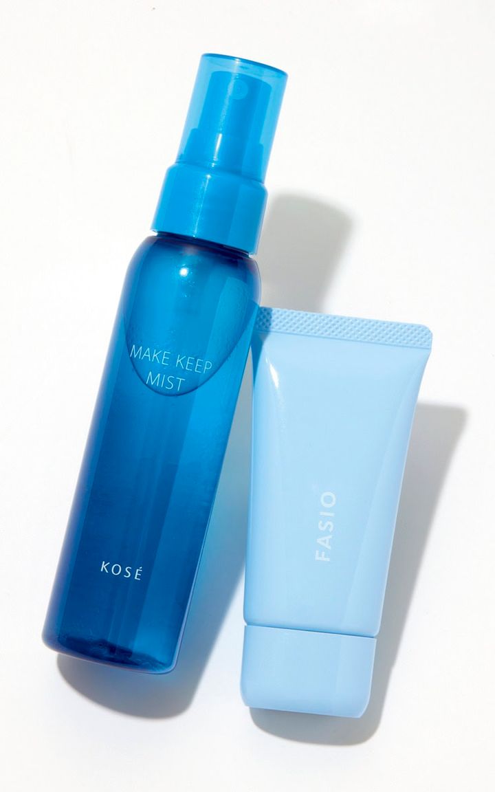 「メイクくずれを防ぎつつ、つけた瞬間からひんやりが持続するBB&フィックスミストで快適に過ごせそう」 〈右〉ファシオ BBティント UV クール SPF50+・PA ++++ 全3色 各30g ¥1, 430〈編集部調べ〉/コーセー(0120-526-311) 〈左〉メイク キープ ミスト EX + 超COOL 80mL ¥1,430〈編集部調べ〉/コーセーコスメニエンス(0120-763-328)