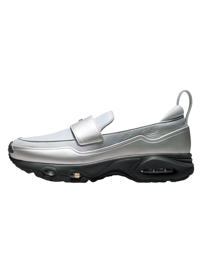 1999年に時代を先取りした革新的な“エア マックス SNDR”をローファーとして復活させたこちらのアイテム。Max Airクッショニングを組み合わせることで快適な履き心地を実現し、上質さを感じられるレザーとメタリックシルバーの光沢感は洗練されたムードを演出。履くだけでスタイリッシュな足元を叶えてくれる。