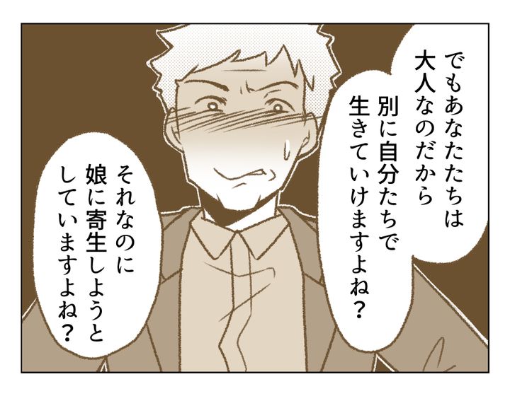 そうです。大学進学時、子どもは自力だけで大学進学をすることはできません。一方でヒデキさんもミサトさんも、自分で働いて自分たちの老後をどうにかすることは可能です。どうしても難しいのであれば、役所に行って相談してみることもできます。自分の力で自分たちの生活を立て直すことは可能なはずなのです。なのに子どもに寄生しようとしている時点で、偉そうに「大学に行かせてもらっただろう」なんて、口が裂けても言えないはずなのに……。アカリさんが冷静に話せることが素晴らしすぎますね。
