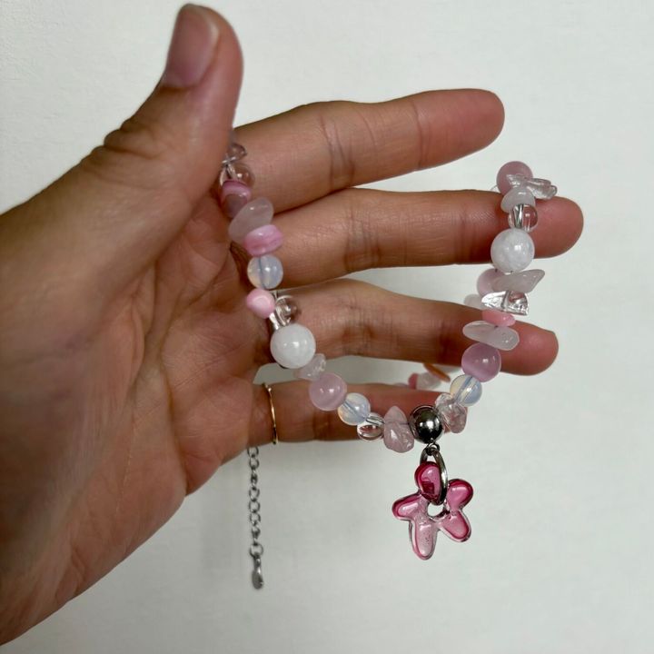 しかも、使われているのは天然石やガラスビーズ、シェル、陶器ビーズなどで、アクリルパーツを使っていないところも、こだわりを感じます。娘もお出かけのときも「これ!」って自分で選んでるくらいお気に入りみたい。鏡見てにこにこ嬉しそうな姿にこっちまで嬉しくなる〜