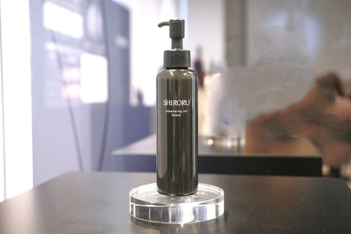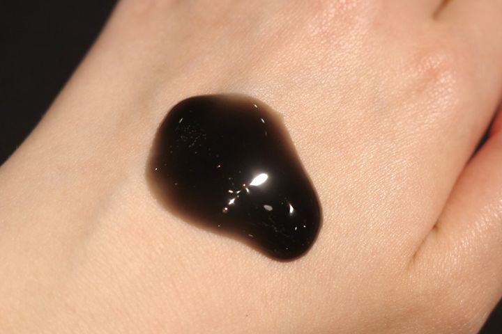 「クレンジングオイル ブラック」を手に取ると、もったりとした粘度の高さが特徴的です。東さんによると、これにはちゃんと開発上の理由があるそう。