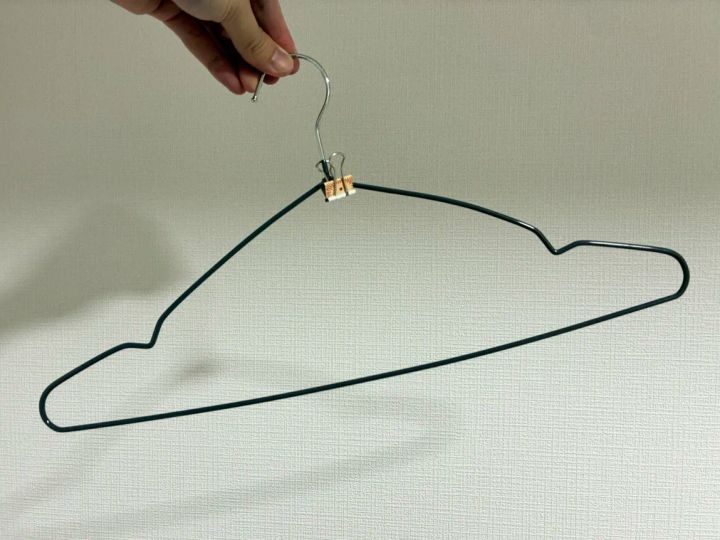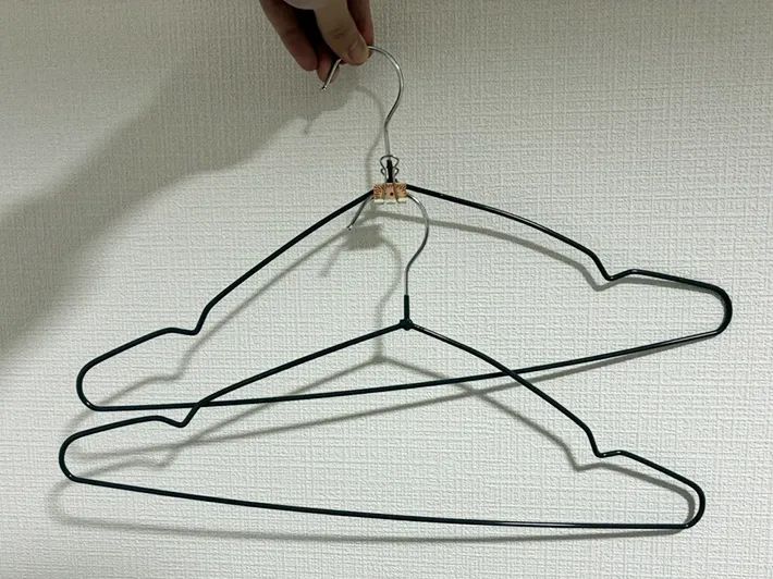 使うのは、1個のダブルクリップと、2本のハンガーのみです。