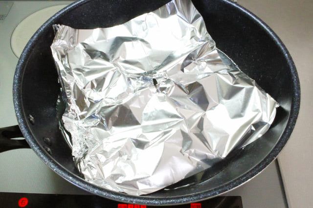 イワシは身がやわらかいのでアルミホイルで軽く落としブタをし、煮汁が沸騰してから弱火にして15分ほど煮ました。