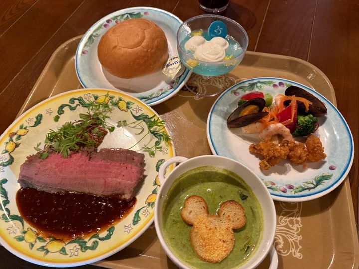 今だけしか食べられないおいしそうなメニューがラインナップ! 今回はカフェ・ポルトフィーノの「スペシャルセット」2980円とドリンクを実食♪ マンマ・ビスコッティ―ズ・ベーカリーで販売中の「ミッキーマカロン」もいただきました!