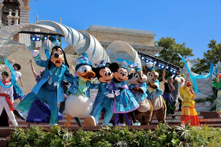 このショーでは東京ディズニーシーのテーマソングのほか、各テーマポートを象徴する音楽や周年イベントのテーマソングメドレーが流れます。いろいろな思い出が蘇ること間違いなし! キャラクターたちと一緒に、25までのカウントアップも楽しみましょう。
