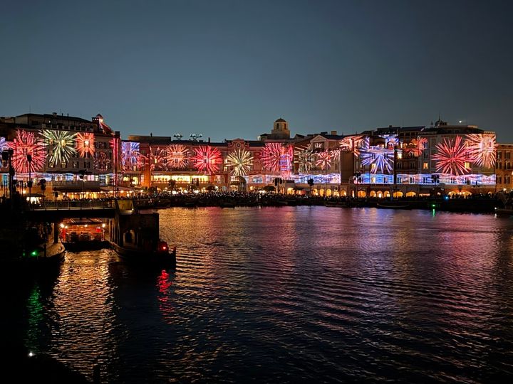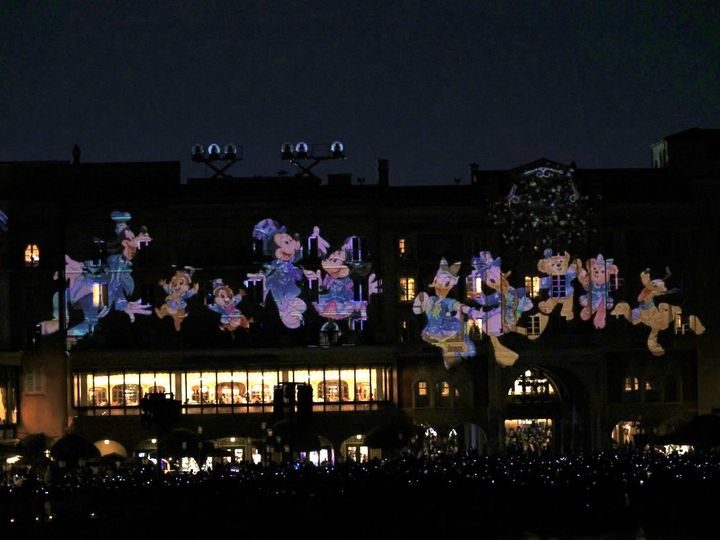 夜になると、環境演出「スパークリング・ジュビリー・ナイト」も実施。東京ディズニーシー・ホテルミラコスタの外壁にきらびやかな映像が映し出されて、音楽に合わせてまるで建物が動いているような演出が楽しめます。