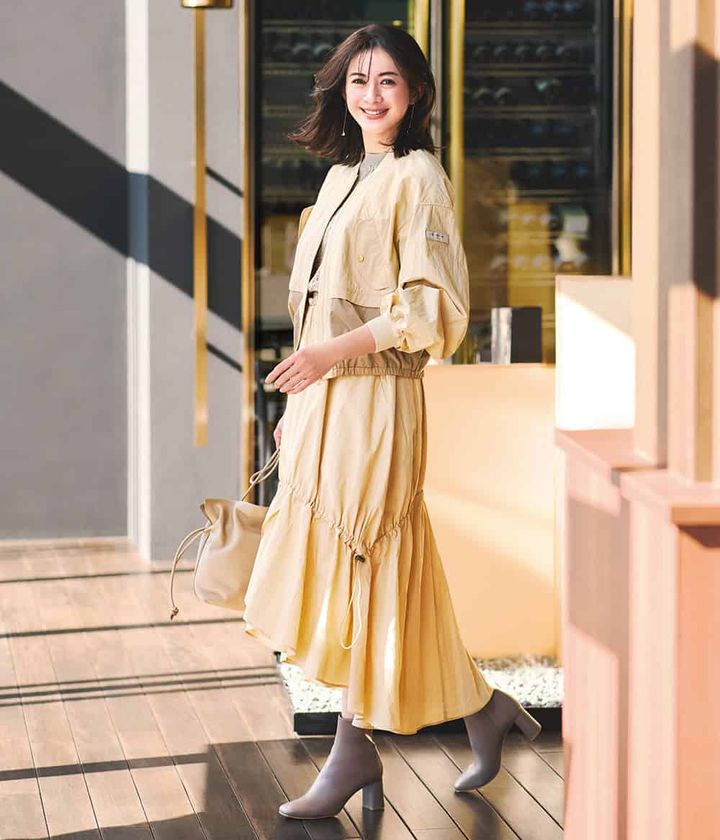 春、40代の定番「ロンスカ&ワイドパンツ」もっとスタイルUPできる〈羽織りの丈〉は?
