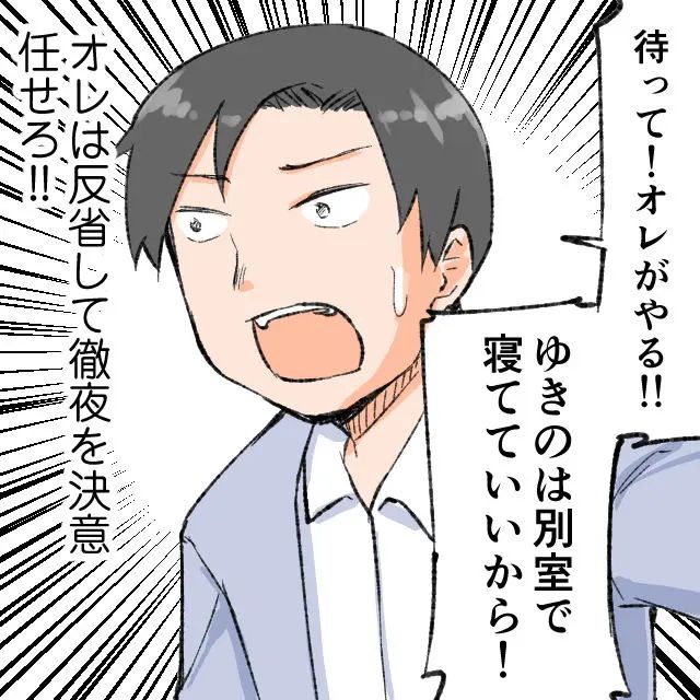 3. 妻の涙に徹夜を決意!娘の夜泣きに立ち向かう勇敢な俺を見せて名誉挽回【起きないオレ、妻の怒りを買う】