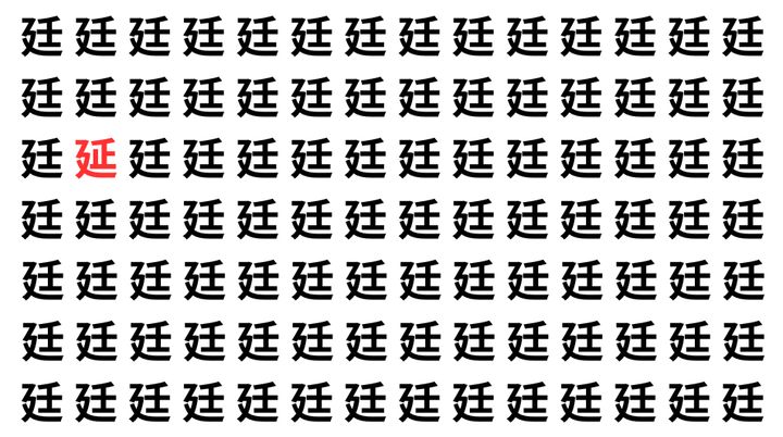 たくさんの「廷」の中に、よく似た別の漢字が1文字だけ隠れています。