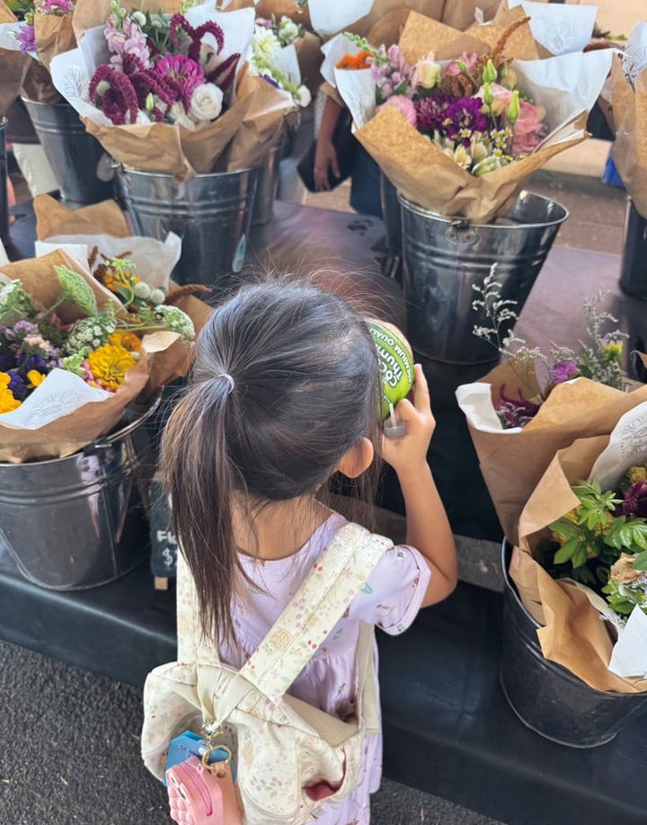 オーガニックしか売っていないファーマーズマーケットで、山盛りのフルーツをゲット