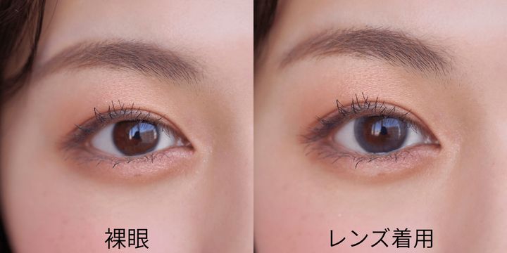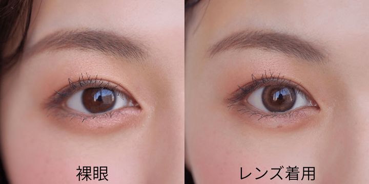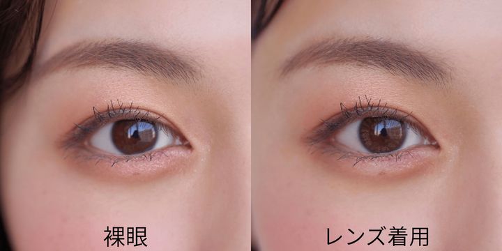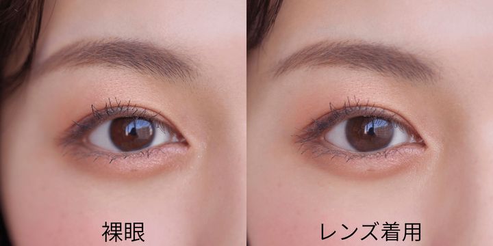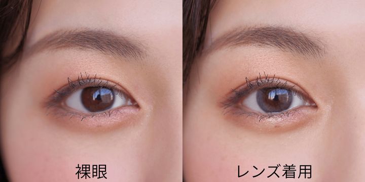 裸眼と見比べてみると、その自然さに驚き! 計算された繊細な光のデザインがプラスされ、瞳の清潔感がグンとアップ。