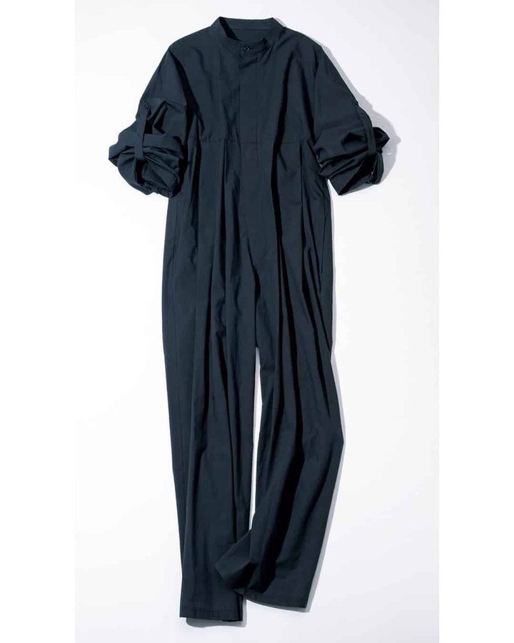大人のカジュアルスタイルを楽しめるジャンプスーツ。メンズライクさがありながら、立体的なボリュームを出す胸元からのタックと高めのウエスト位置が女性らしさをプラスします。軽やかなコットン素材を使用し、ふんわりとしたボリュームが愛らしいシルエットに。スリーブタブでロールアップができ、気温やスタイルに合わせたアレンジが可能です。一枚でコーディネートが完成するアイテム。