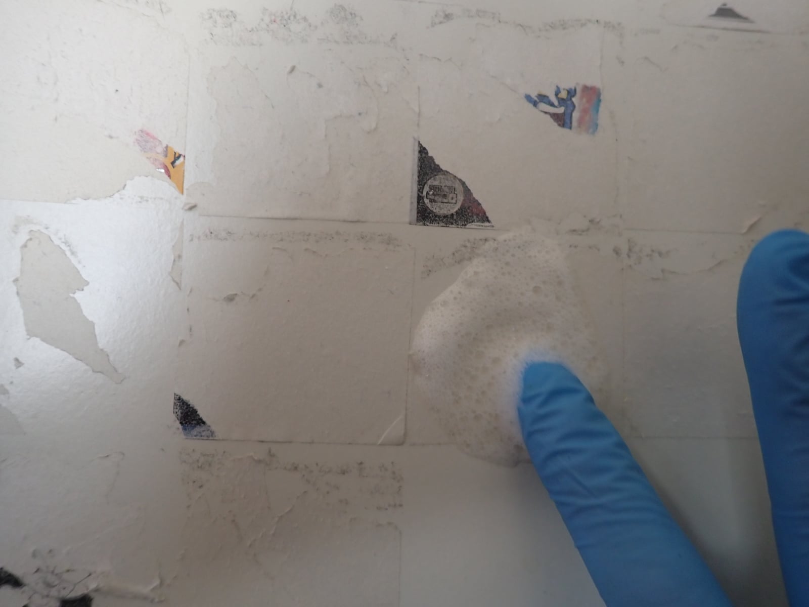 シール全体を覆うように、洗剤をしっかり塗ります。端だけでなく、中央まできちんと行き渡らせるのがコツ。量が少ないとうまく浸透せず、途中でちぎれる原因になりかねません。「ちょっと多いかな?」くらいが、実はちょうどいいです。