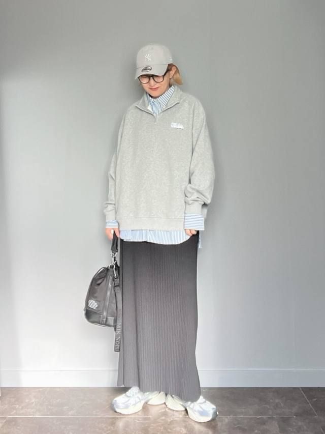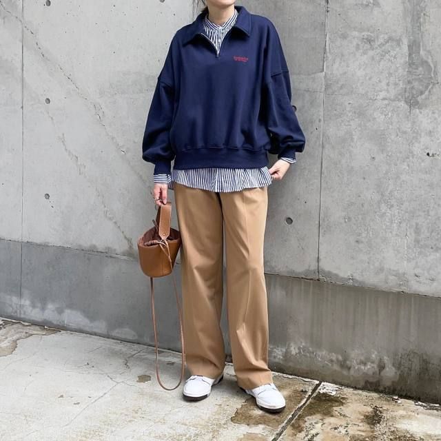 ハーフジップスウェット×スニーカーのコーデ
