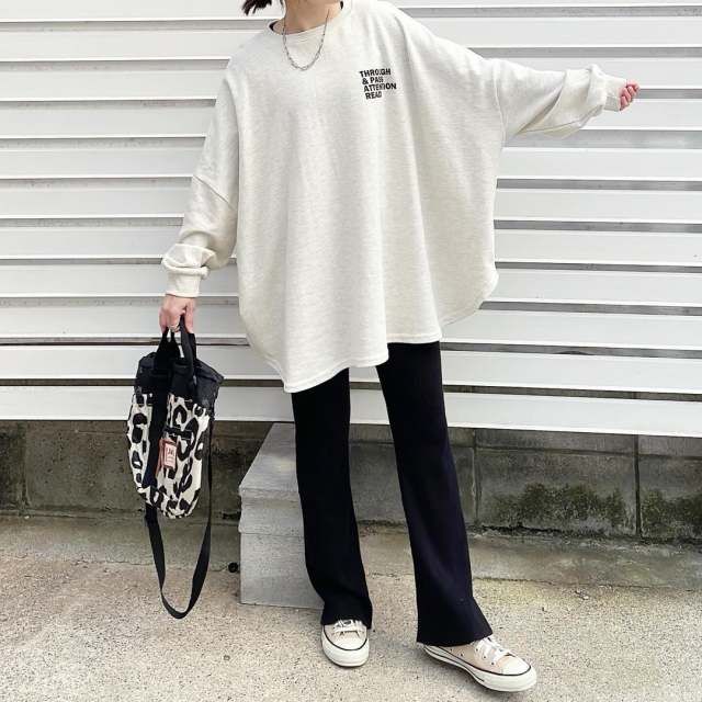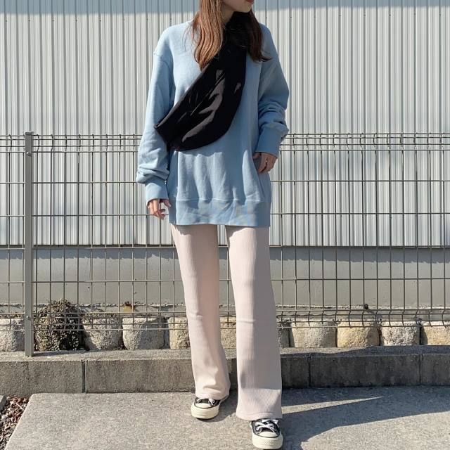 スウェット×スニーカー×フレアパンツのコーデ