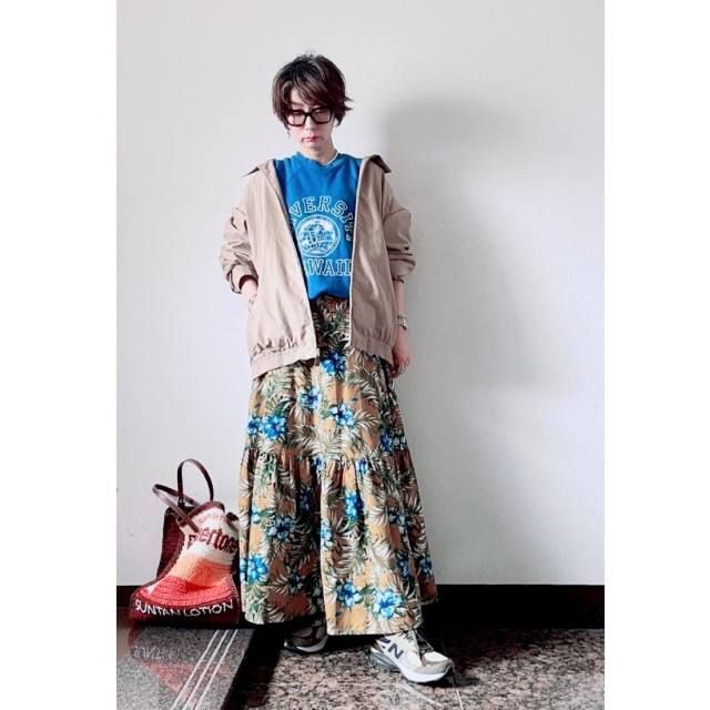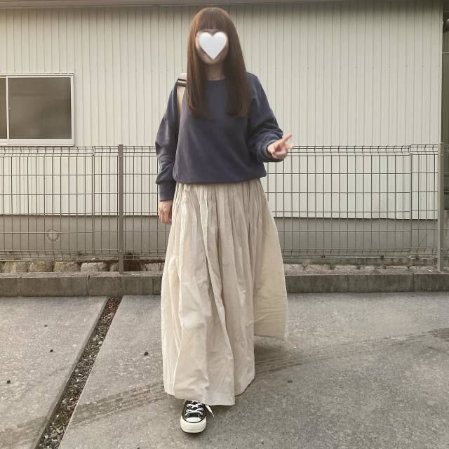スウェット×スニーカー×ボリュームスカートのコーデ