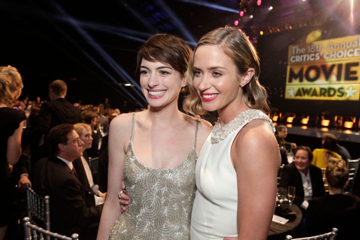 写真/『プラダを着た悪魔』で共演以来、親友のハサウェイとエミリー・ブラント。ブラントはハサウェイについて「私が最も長く知っている人の一人」と語っている。