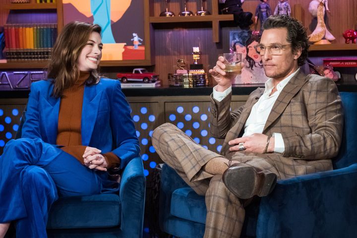 写真/2019年1月、アンディ・コーエンのトーク番組「Watch What Happens Live With Andy Cohen」に出演するアン・ハサウェイとマシュー・マコノヒー。2人は『インターステラー』、『セレニティー:平穏の海』で共演。