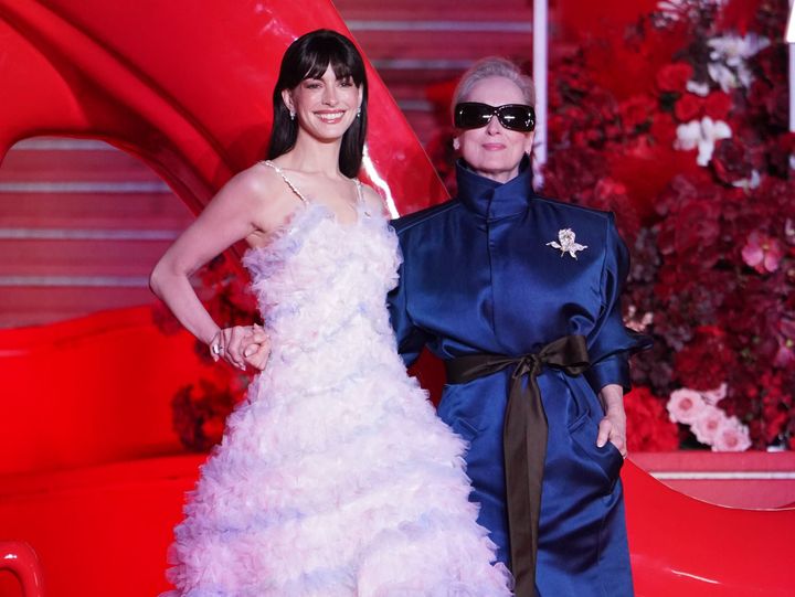 写真/2026年4月8日、ソウルで行われた『プラダを着た悪魔2』のプレスカンファレンスに共演者のメリル・ストリープと出席したアン・ハサウェイ。