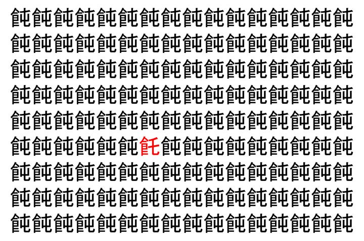 2. 【脳トレ】「飩」の中に紛れて1つ違う文字がある!?あなたは何秒で探し出せるかな??【違う文字を探せ!】