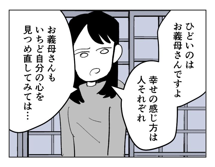 私(アリサ)は、夫のショウと小学3年生のリクと小学1年生のミウの4人家族。義母は昔から私のことを否定しながら、最後は必ず「私は今こんなに幸せ!」と主張してきます。10年間、私は義母の「私は幸せ!」をスルーし続けてきました。が、転職を決めた私に対して「幸せじゃない!」と決めつける義母に、とうとう我慢の限界に。義母に思いっきり言い返し、幸せなんて人と比べるものじゃないと伝えたのです。すると義母は泣き出してしまい……。