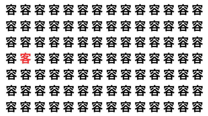 たくさんの「容」の中に、よく似た別の漢字が1文字だけ隠れています。