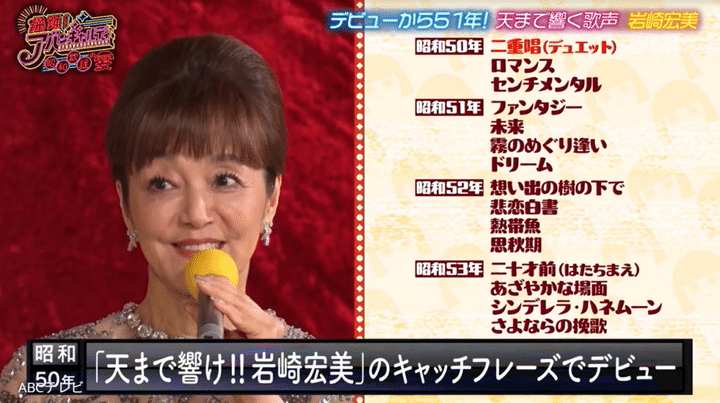 【TVer】さすがデビュー51周年の実力! 岩崎宏美の「聖母たちのララバイ」歌唱に共演者たち「言葉が出なかった」「寛大な大きな器で包み込まれているような気持ち」
