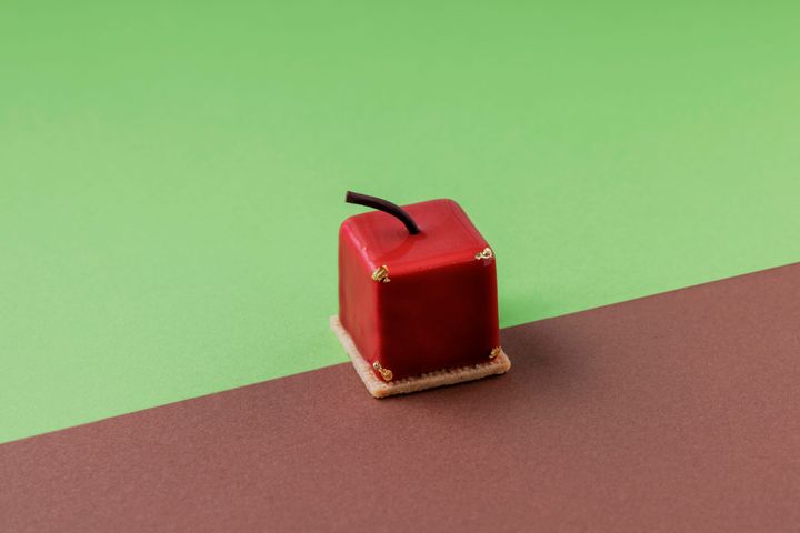 アーモンドフィナンシェ、チェリーコンフィ、チェリーマスカルポーネクリームに軽やかなチェリームースを重ね、赤く艶めくグレーズで仕上げた「チェリームースケーキ」は、爽やかな酸味とフルーティーさ、そして軽やかなムースの口当たりが重なり合う優しい味わい。層ごとのコントラストが華やかで、キューブ型の可憐な佇まいも魅力です。
