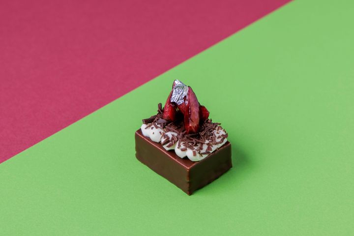 チョコレートビスケットになめらかな生チョコレートを重ね、フレッシュチェリーをトッピングした「ブラックフォレスト チョコレートケーキ」は、濃厚なチョコレートとチェリーの爽やかな酸味の絶妙なバランスが特徴。