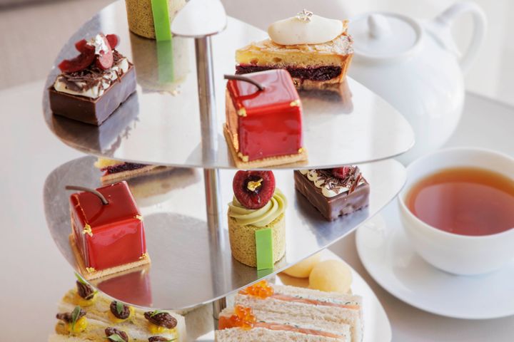 セイボリーには、春野菜や旬の食材をふんだんに使用。「アスパラガスのタルト キャラメライズドオニオン オランデーズソース」、旬の桜鱒を使った「桜鱒 自家製ライブレッド ディルクリームチーズ」、多彩な風味が重なる「鴨のスモーク グリオットチェリーとピスタチオ」など、春の訪れを感じられるラインナップに。そのほか、本場イギリスのアフタヌーンティーに欠かせないサンドイッチも3種類、そして人気のスコーンはバターの芳醇な香り漂うプレーンとチェリーの2種類が登場します。