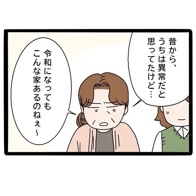 「昔から、うちは異常だと思ってたけど・・令和になってもこんな家あるのねぇ~」と呟くのを聞いて、