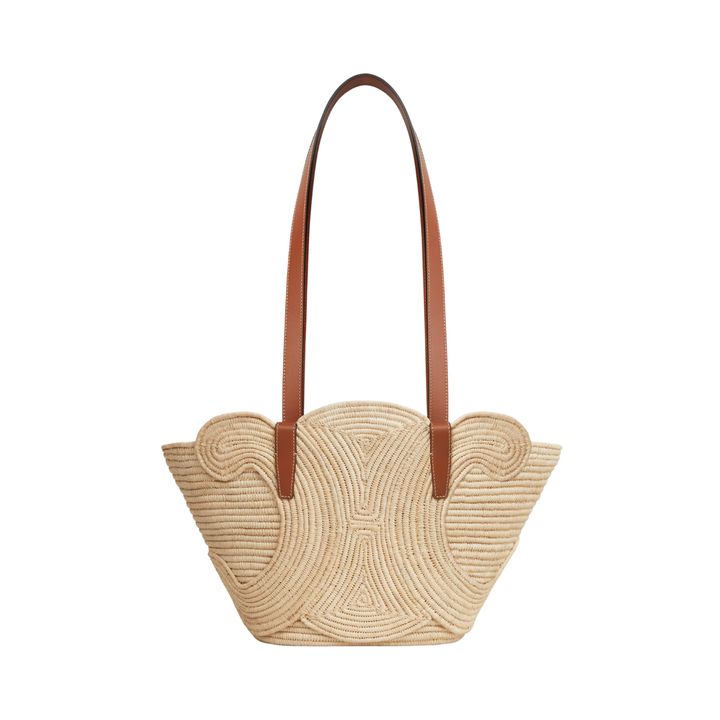 ラフィアの風合いと上質なカーフスキンのレザーが見事にマッチ。ラフィアであしらわれたトリオンフが、新鮮な装いに。ロングハンドルで肩掛けしやすいうえ、荷物もたっぷり収納できる頼れるサイズ感。4/29〜5/12に阪急うめだ本店で開催のサマーコレクションのポップアップ「Été Celine 2026 pop-up」にて展開予定。