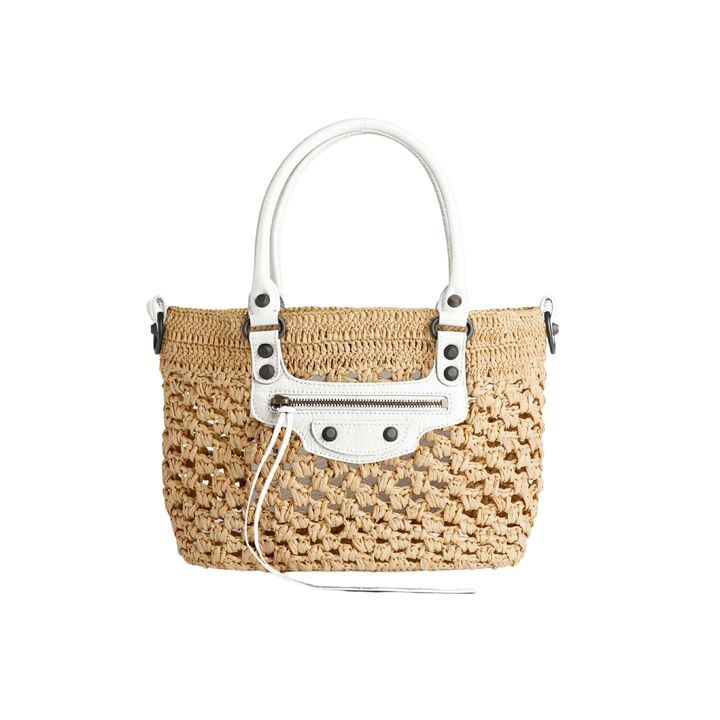 一方、ウィッカーやストロー素材は、しっかりとしたフォルムが特徴。構築的なシルエットがきれいめな印象を与え、都会的なスタイリングとも好相性。レザーとのコンビネーションを選べば、より上品にまとまる。