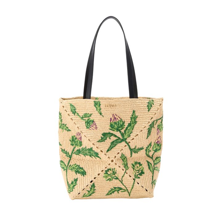 ロエベからは「パウラズイビザ」コレクションから、繊細な刺繍で描かれたアーティチョークモチーフが目を引く新作をセレクト。軽やかさとクラフト感を兼ね備え、夏のスタイリングを華やかに仕上げてくれる一品。
