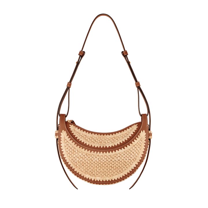 ざっくりとしたラフィア風素材による透け感がスタイリングにこなれ感をプラス。アイコニックなジップディテールがエッジを効かせ、かごバッグにモードな表情を添える。調節・取り外し可能なストラップ付きで、クロスボディとしても楽しめる。
