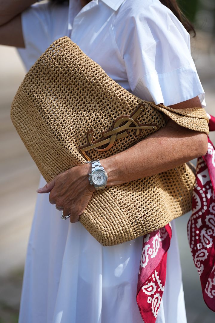 サンローランからは、ラフィアの軽やかな風合いに繊細な編み地がリラクシーなムードを演出する「パニエバッグ」が登場。中央に編み込まれたカサンドラロゴがアクセントとなり、洗練された印象をプラス。
