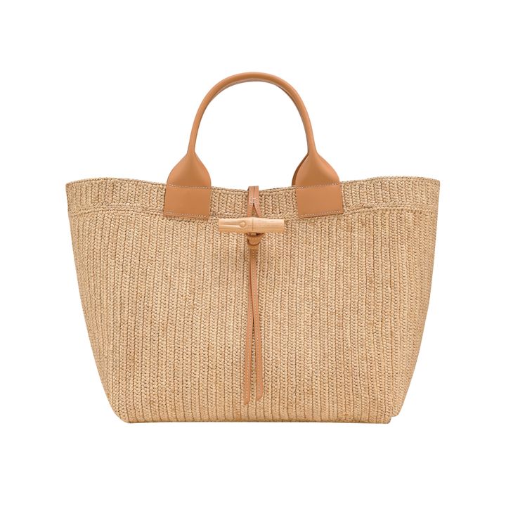 ロンシャンはマダガスカルのNGO ANAKAと協業し、人気の「ル ロゾ」をラフィア素材で軽やかにアップデート。ナチュラルな風合いに、レザーのハンドルがやさしくなじむ。パソコンも入るサイズ感でお仕事バッグとしても活躍してくれるはず。