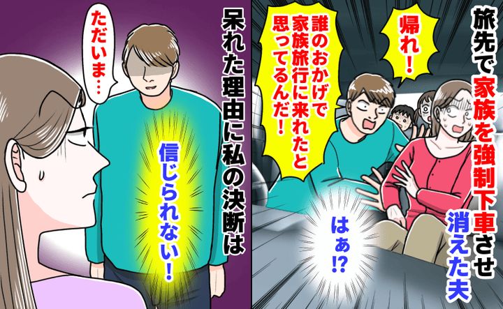 「誰のおかげで旅行に来れたんだ!」家族を強制下車させ消えた夫。2日後帰宅…呆れた理由に私の決断は