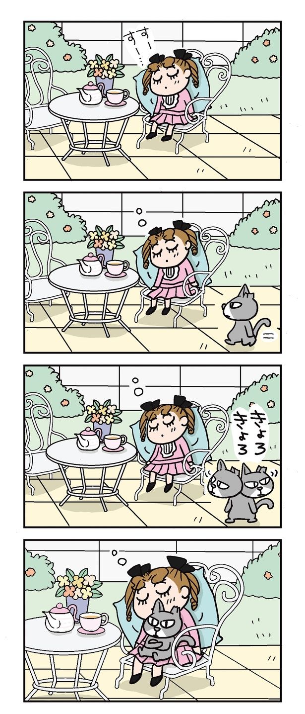 【著者傑作選】女の子がお庭でお昼寝中。それを見たクールなノラ猫が意外な行動に…/ねぇ、ぴよちゃん②
