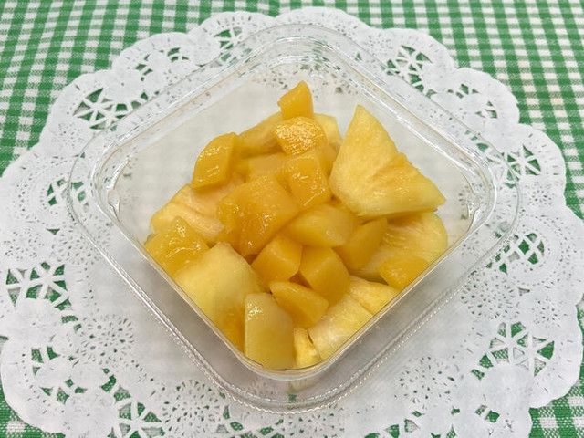 食物繊維が豊富な、酸味と甘みのあるパイナップルとマンゴーを手軽に食べられる商品です。 宮崎・鹿児島で販売