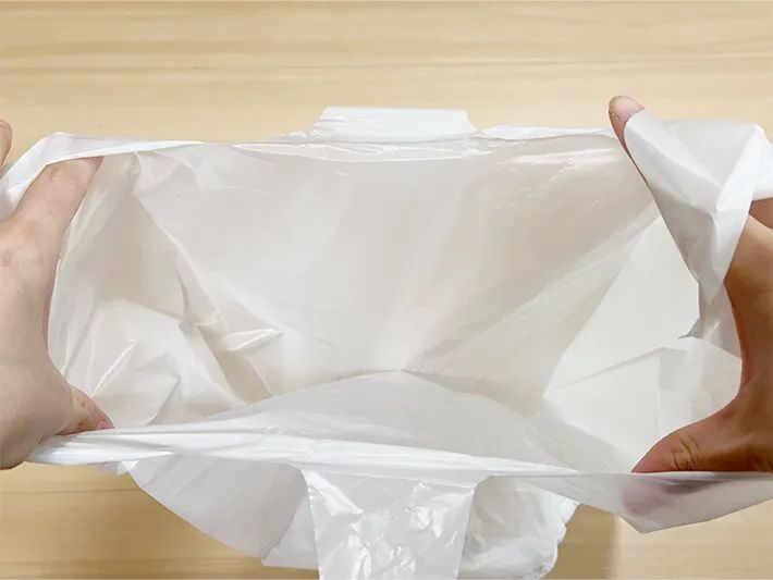 まず、ポリ袋の開け口部分を両手で持ちます。