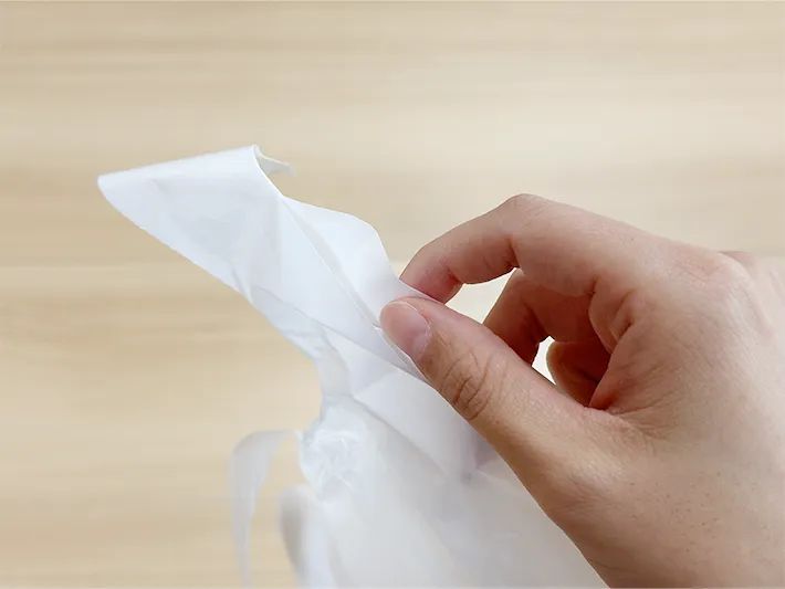ポリ袋の開け口部分を横に向かって軽く引っ張りましょう。