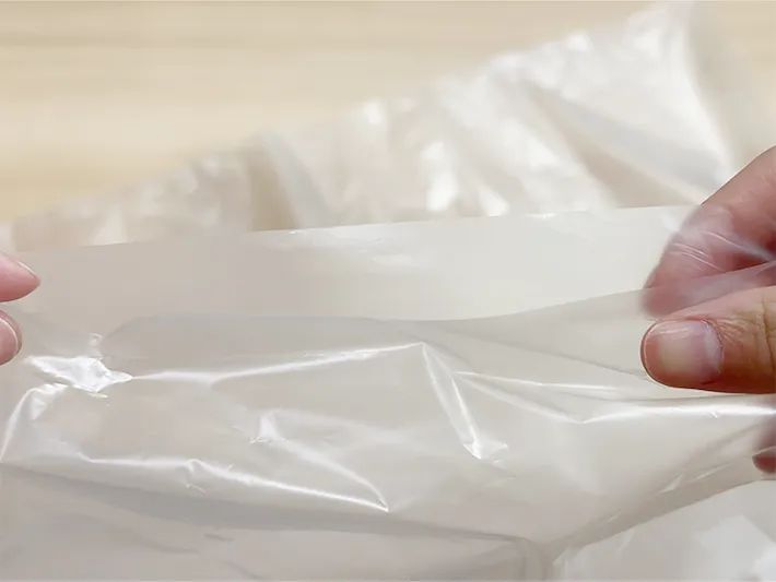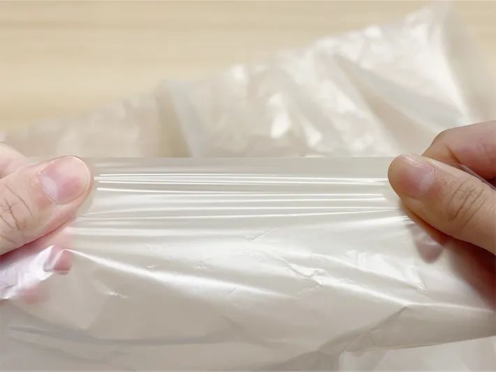 引っ張った後、ポリ袋の表面を親指で下にスライドしてください。