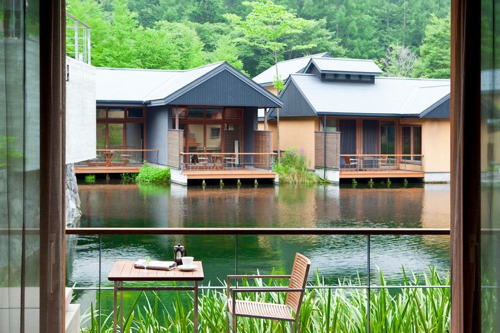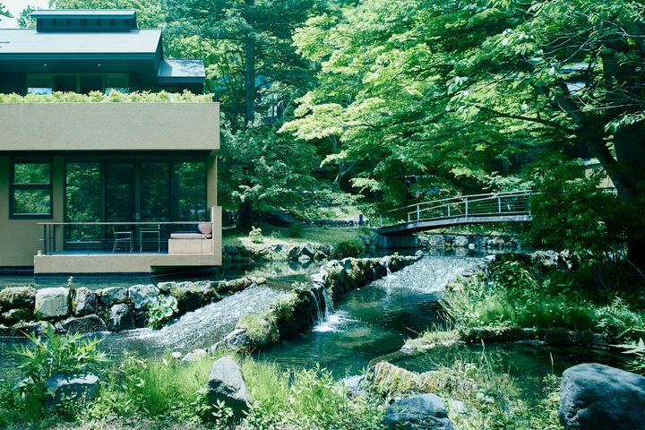 浅間山の麓、豊かな森と清流に包まれた谷あいに広がる「星のや軽井沢」は、「星のや」ブランドの原点ともいえるリゾート。“谷の集落に滞在する”という独自のコンセプトのもと設計され、分棟型の建築が点在する構成となっている。