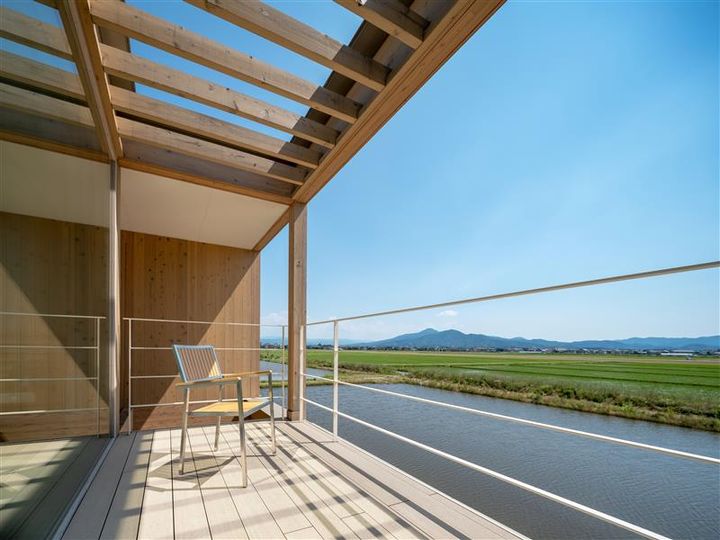 水田の表情が季節によって大きく変わるのも本施設の大きな魅力の一つだ。春には水面に青空が映り、初夏には稲が芽吹き、秋には黄金色の稲穂が揺れる。こうした風景の変化そのものが、滞在体験の一部として組み込まれているのだ。