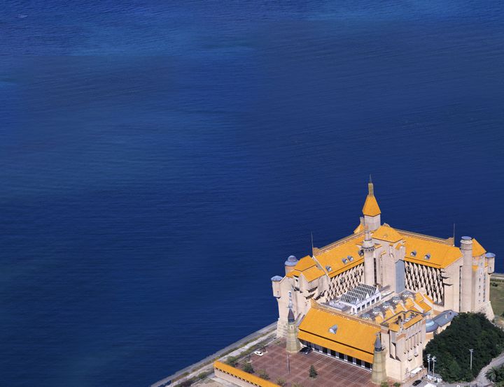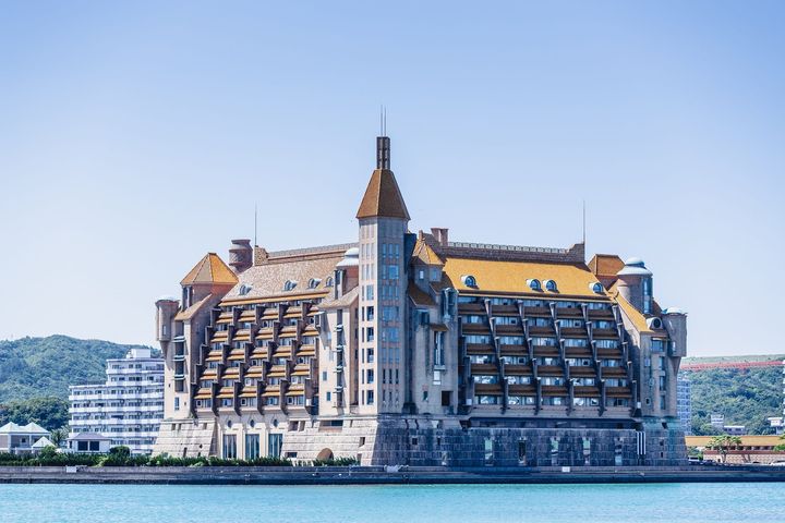 白浜の海を望む地に建つ「ホテル川久」は、城郭のような外観で知られるリゾートホテル。バブル期の1989年、永田祐三の設計監修のもと、「世界の数寄屋」をテーマに計画され、中国、ヨーロッパ、イスラム、日本など各地の技術を融合させて建設された。