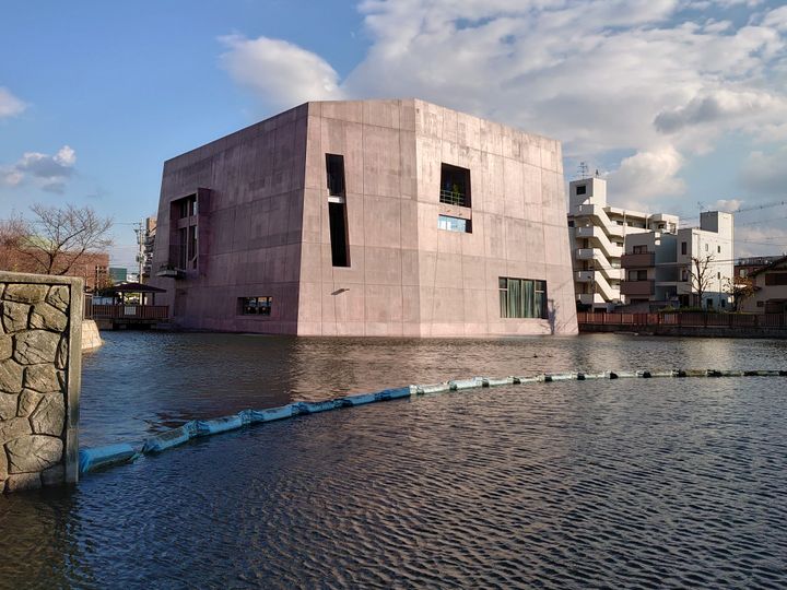 直方体を基調としたミニマルな構成は、花崗岩やコンクリート、ガラスといった限られた素材によってかたちづくられている。池に向かって張り出す「土門拳記念室」や、 冬の風から中庭と入口部分を守るために配された大壁が、建築と水辺の関係に明確なリズムを与える。